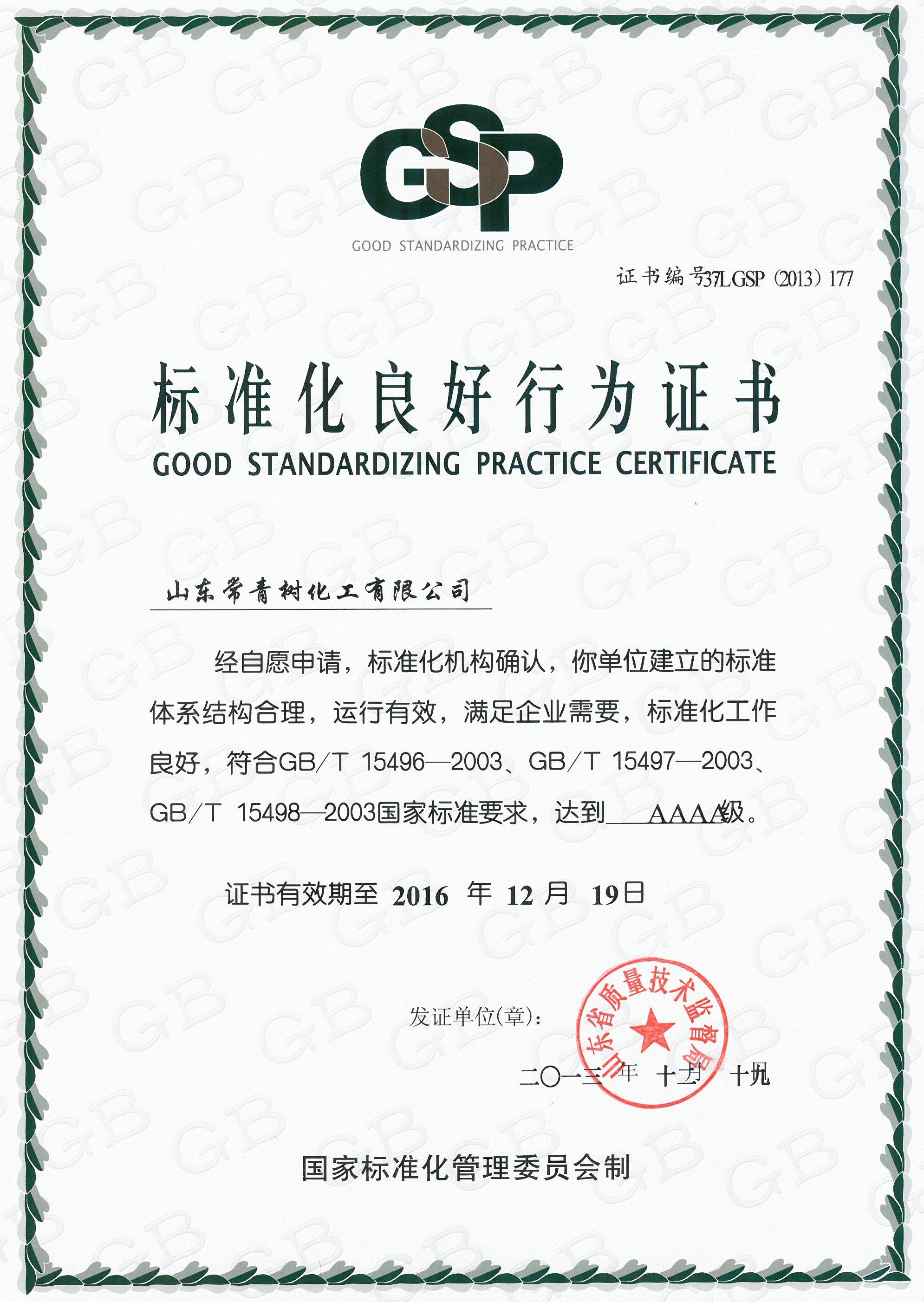 2013年,國(guó)家標(biāo)準(zhǔn)化AAAA級(jí)良好行為
